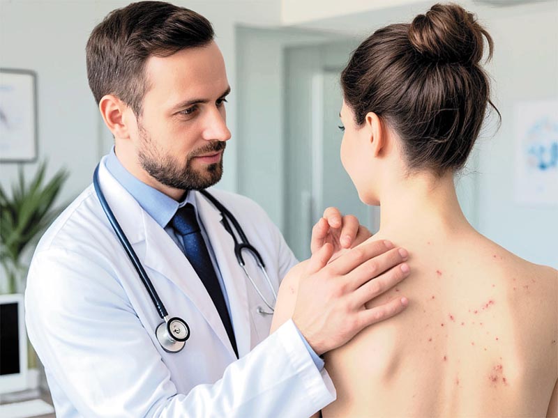 — Около года назад на коже начали появляться высыпания — шелушащиеся прыщики, при сдирании корочки образуются язвочки, и заживают они очень долго.
